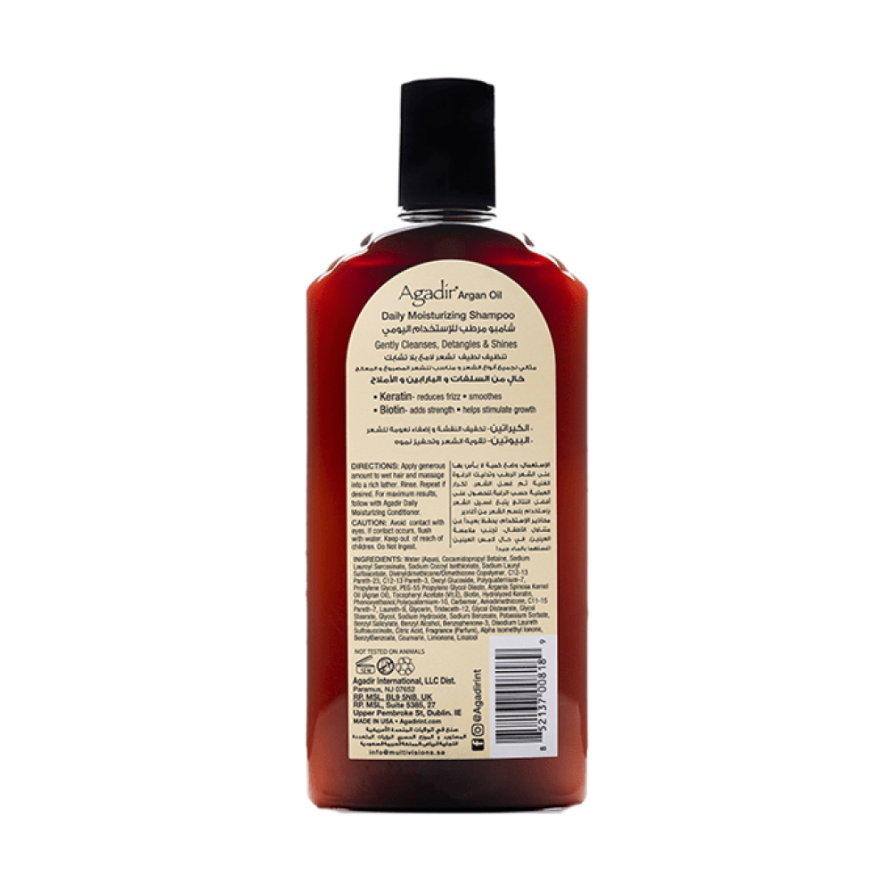 شامبو بزيت الارغان للترطيب اليومي من أغادير هو مستحضر رائع لترطيب وتغذية الشعر بشكل فعال. تركيبته الفريدة تحتوي على زيت الأرجان الطبيعي النقي بنسبة 1%، والذي يعمل على ترطيب وتنعيم الشعر وفك تشابكه، كما يساعد على الحفاظ على لون الشعر وتجعل مظهر الشعر طبيعي ولامع وصحي. اطلبيه الآن واستمتعي بالإحساس بالرفاهية والجمال الذي يمنحه لشعرك.