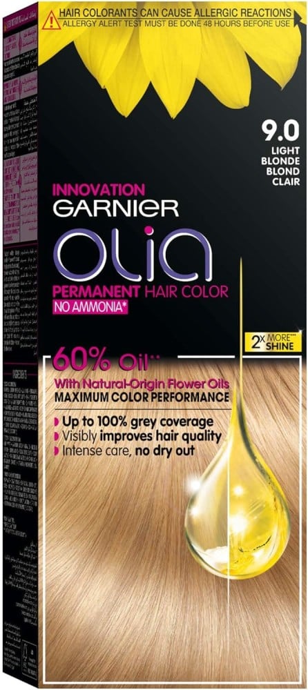 - صبغة الشعر الطبيعية اوليا من غارنييه هي أول صبغة شعر منزلية خالية من الأمونيا ومزودة بالزيوت.