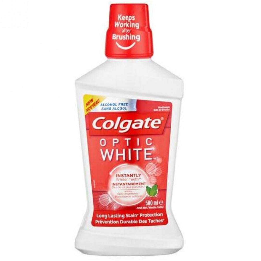 قم الآن بشراء غسول الفم كولجيت أوبتيك وايت للتبييض ، تم تصنيعه من عناصر تمنحك إشراقة ملحوظة بعد تنظيف الأسنان بمعجون أسنان أوبتيك وايت لتمنحك فوراً أسنان بيضاء رائعة فهو من أفضل منتجات الفم والاسنان الذي يقضي على رائحة الفم الكريهة ويمكنك شراء هذا الغسول من خلال متجر صيدلية كوم الذي يوفر جميع منتجات وادوات الخاصة بماركة كولجيت للعناية بالفم والاسنان .