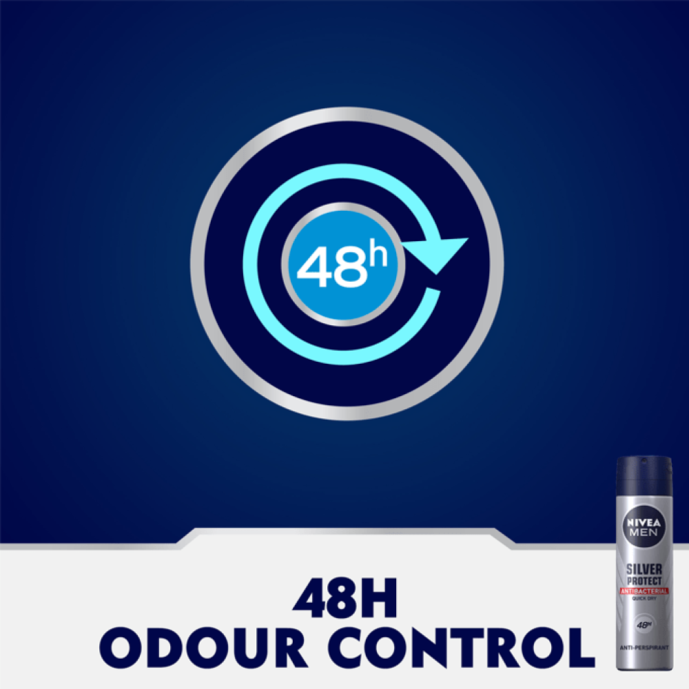 يمنحك معطر الجسم ,ومزيل رائحة العرق سيلڤر بروتكت للرجال من نيڤيا حماية قوية وطويلة المفعول والتي تم تطويرها خصيصًا للرجال لتنظيم التعرق والتخلص من رائحة العرق الكريهة، وتحتوي التركيبة المبتكرة على أيونات الفضة والتي ثبت علميًا أنها تتخلص من البكتيريا بصورة آمنة، الأمر الذي يمنع ظهور رائحة العرق ، كما تضمن هذه التركيبة الرائعة حمايتك من التعرق.